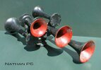 48 | Nathan P-7x, A standard first generation Nathan P-5 which plays the chord C#, E, G, A, C#. This has been modified by adding a 0 Bell, available from Nathan, which plays low A. Modifying a third generation #5 bell by removing on quarter inch from the bell to make it sound high E. Lastly, the #3 bell was modified by reaming out the diaphragm housing to make it sound F#. The manifold was also modified to accept the two additional bells. Final chord: A, C#, E, F#, A, C#, E. | ||