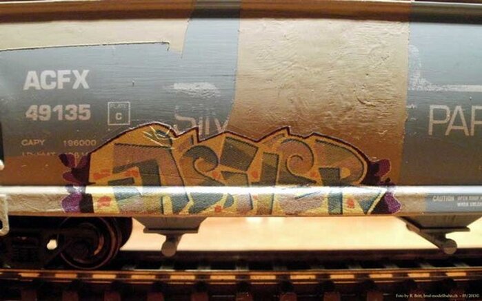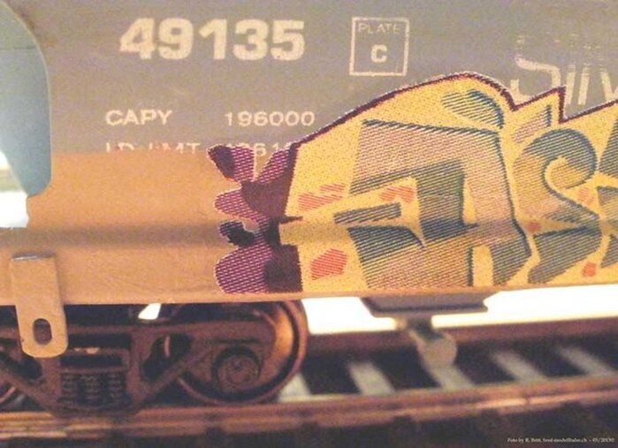 Graffiti stammt von einem Decalbogen von Blair Line. Reparierten Front oder Heck Schaden (Roter Quadrat).
