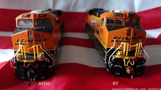 Ich habe versucht die beiden ES44AC BNSF 6111 zu Vergleichen. Um zusehen welche besser Detaillierter, Beschriftet, filigraner ist und welche in etwa den richtigen Farbton/Farbtöne hat.