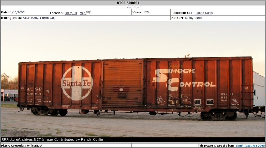 Zeigt eine andere Roadnumber #600601 SF/ATSF, aber den selben Box Car Typ. Da es keine Historie von der Roadnumber #600307 SF/ATSF gibt.