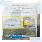 Liebe US G-Scaler/innenLiebe Gartenbahner/innenLiebe InteressierteJackie Schindler lädt uns am Samstag, 24.05.2025 zu einem Fahrnachmittag auf ihrer Gartenbahn in Sulz AG ein. Ausweichdatum bei Schlechtwetter ist der Sonntag, 25.05.2025.Anmeldung bitte via Nuudel:https://nuudel.digitalcourage.de/xxxxxxxxxxAnreise zu Jackie Schindler, xxxxxxxxxxxx xx, 5085 Sulz AG (Laufenburg):ÖV: Stündliche Busverbindung ab Laufenburg Bahnhof nach Sulz AG, Haltestelle Mitteldorf, ca. 8-10 Minuten Fussweg zu Jackie (ca. 500 m).Auto: Nur wenige Parkplätze beim blauen P (siehe Luftbild), oder vor dem Haus. Weitere Parkplätze ca. 350 m entfernt im Dorf.Verpflegung:Der Holzkohle-Grill zum Bräteln des mitgebrachten Grillgutes wird am späteren Nachmittag eingefeuert. Getränke sind vorhanden. Wer etwas zum Anlass beitragen möchte (Salat, Dessert, weitere Getränke, etc.) wird gebeten, dies ebenfalls bei der Nuudel-Anmeldung zu vermerken. Bitte schreibt ins Nuudel-Kommentarfeld, was ihr mitbringt. Besten Dank für alle Beiträge.Zur Anlage:Regelmässige Leser unseres Forums haben sicher schon bemerkt, dass der Gleisplan der Anlage wesentlich verbessert wurde. Neu ist a. A. ein Gleisdreieck zum Wenden von Loks oder kurzen Zügen. Kleinster Radius ist Piko R7 (1.56 m). Das ist etwas grösser als LGB R3, aber kleiner als LGB R5. Die Abstellgleise sind je mindestens 5 Meter lang, teils 9m. Alle Weichen draussen sind R5, im Abstellbahnhof R3. Zuglängen bis zu 20m sind möglich, vielleicht auch länger?. Die Steigung beträgt rund 2%, lange und schwere Züge benötigen zwei oder mehr Loks. Wer nur Loks mitbringen will - es hat genügend Wagen vor Ort (1:29 , 1:22.5, Fn3). Bitte nur Fahrzeuge mit Metallrädern mitbringen. Gefahren wird normalerweise mit Massoth. Sofern eine Zentrale mit begleitendem KnowHow organisiert werden kann ;-), wird nach Möglichkeit eine eine Zimo-Zentrale eingerichtet. Welche Zentrale schlussendlich im Einsatz stehen wird, ergänzen wir hier im Forumseintrag.Allfällige weitere Infos und Fotos vom Anlass folgen hier im Forum.Herzlichen Dank an Jackie für die Einladung.Beste GrüsseFrank