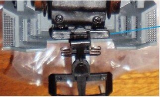 So es gab eine Lösung. Dies durch ein Vereinsmitglied, welches das selbe Problem hatte. Er entfernte gleich selber den Support (2) mit den Flaschen Öffnern an meiner SD40-2. In dem er mit einem Speziell geformten sehr dünnen Metallplatte in der form und grösse einer Rasierklinge den Support mühsam heraus Hebelte nach dem lösen der zwei Schrauben.