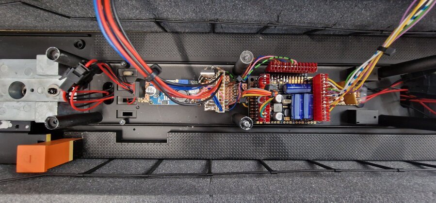 Verbaut wurde ein ZIMO MX699LSE Decoder und ein Visa Ton Lautsprecher. Der Sound ist gewaltig. Aber man kann diesen ohne Probleme leiser machen. Der Rauch ist auch sehr gut. Wenn man diesen Aktiviert läuft dieser 6 min. dann stellt er ab und man kann Rauch Destillat Nachfüllen und erneut Aktivieren.