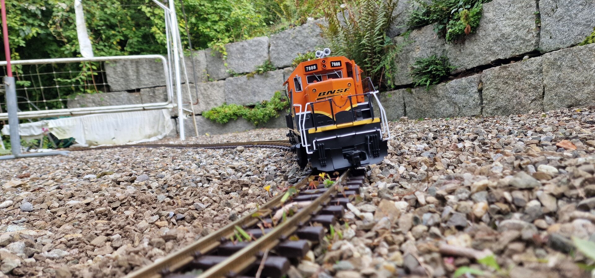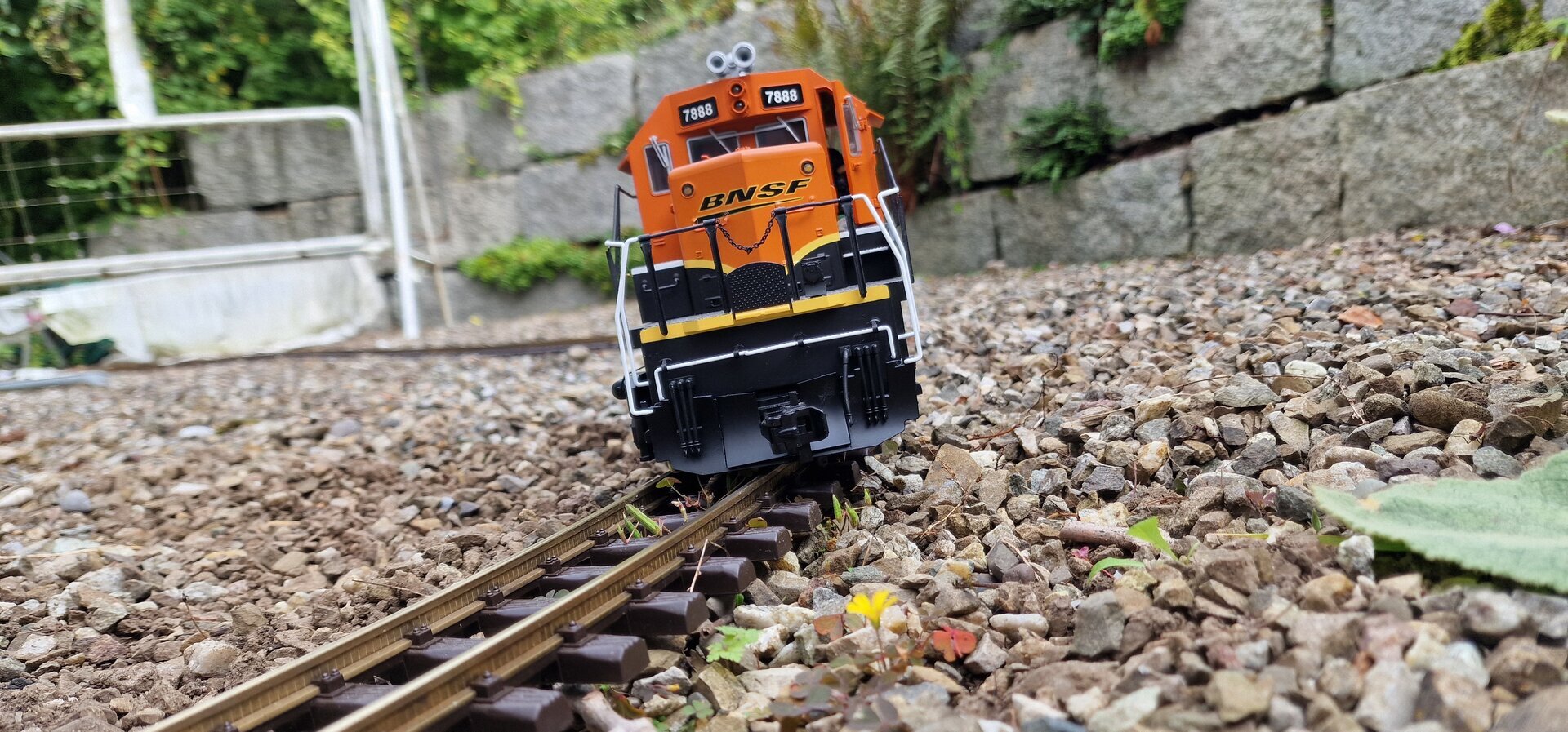 21.09.2025: Spontanes Fahren mit der SD40-2 BNSF von USATGanz Spontanes Fahren bei einem Freund. Mit dem ich zusammen diverses Spur G Rollmaterial habe. Sprich DCC Zentrale, Handregler, Schienen und Weichen.... Schienen (LGB) wurden einfach auf seinem ehemaligen feinem Kies Sitzplatz verlegt. Ohne das der Platz Aus geebnet wurde.