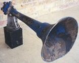 18 | Leslie S-25 | Most of the bells used in multichime Leslie Supertyfon horns could also be purchased individually as single note horns. The Leslie S-25, for example, is simply the Supertyfon #25 bell on a base. The #25 is also the largest bell on the S-3L and S-5T. The picture shows a very early S-25, with a bronze power chamber and two-piece bell.