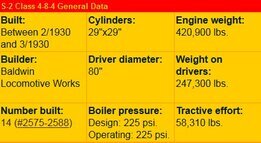 Number built: 14 (#2575-2588) | Boiler pressure: Design: 225 psi. Operating: 225 psi. | Tractive effort: 58,310 lbs. | ||||||
