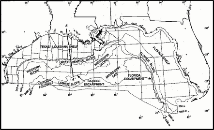 - Northeast Gulf of Mexico, which extends from a point east of the Mississippi River Delta near Biloxi to the eastern side of Apalachee Bay.