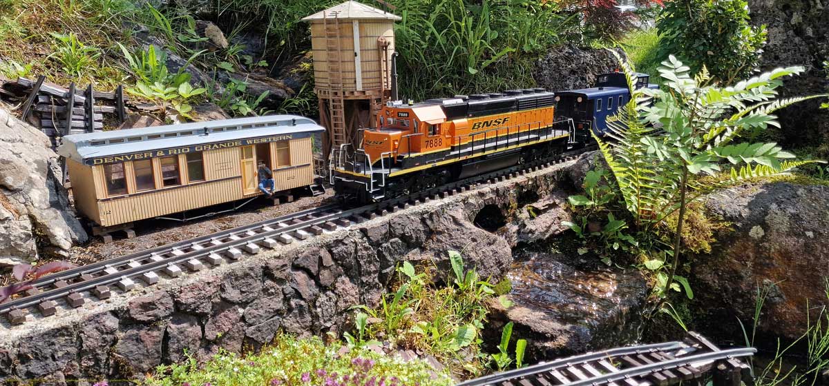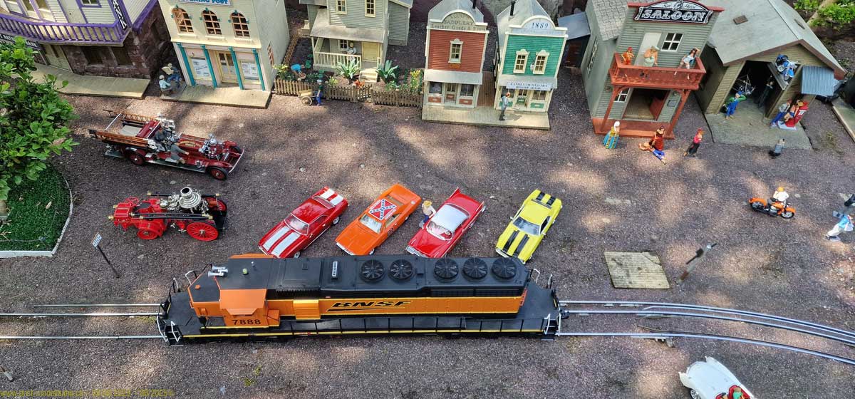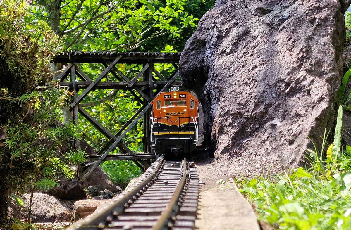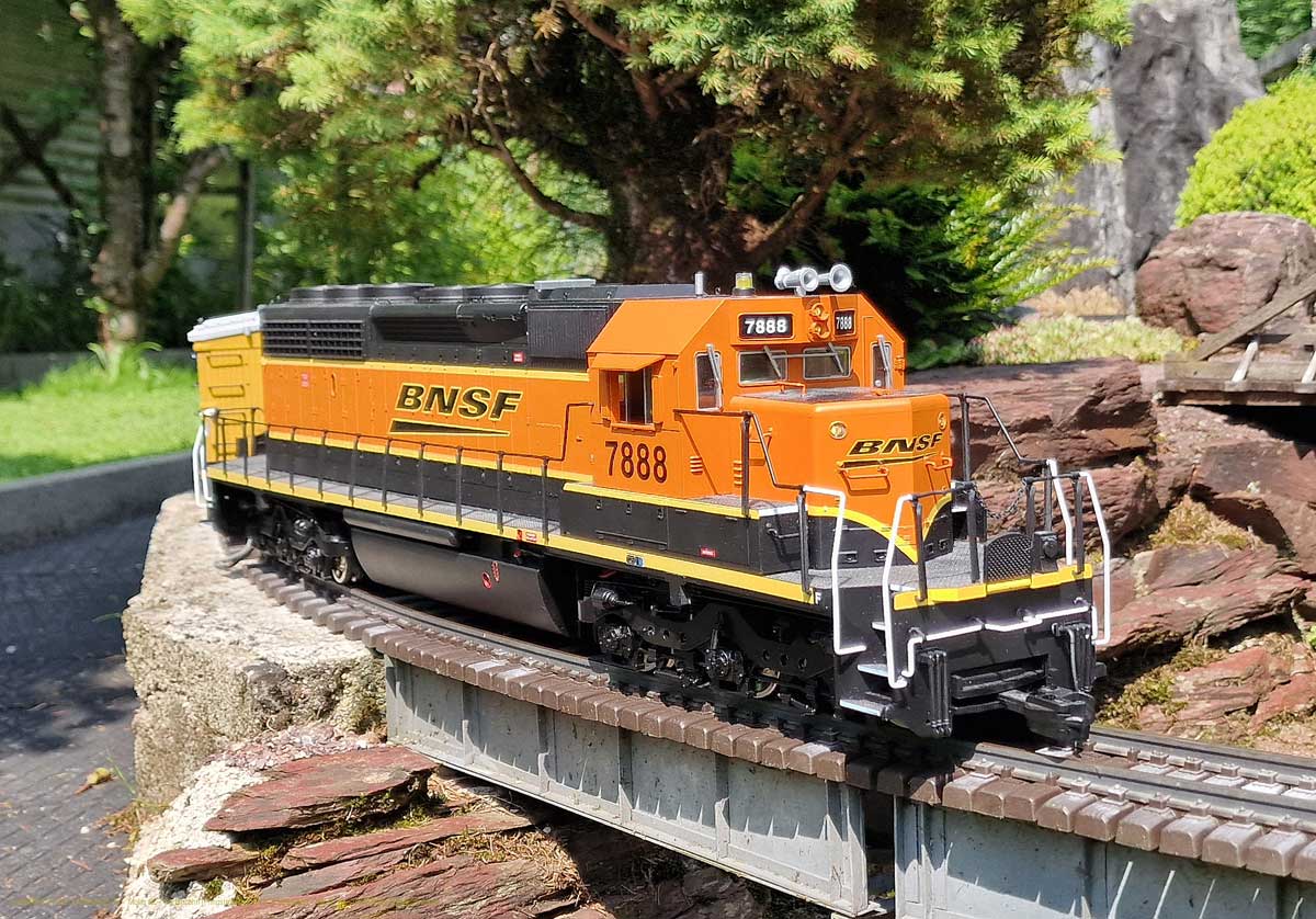 Ja meine SD40-2 BNSF #7888 ist auf der sehr schönen Gartenbahn Anlage von