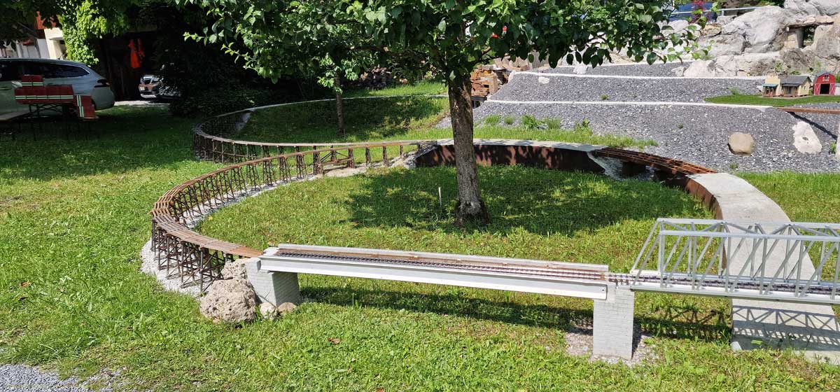 Er hofft das sie bis im Oktober fertig ist und er sie an seinem 70 Geburtstag Eröffnen kann und so Einweihen kann.Ansonsten hoffe ich mal. Das sie nächste Pfingsten fertig ist und befahren werden kann. Auf der es keine einzige Weiche geben soll und somit auch keine Ausweichstrecke. Man da auch mit langen Zügen und Freght Cars ala 60' und 55' fahren kann.