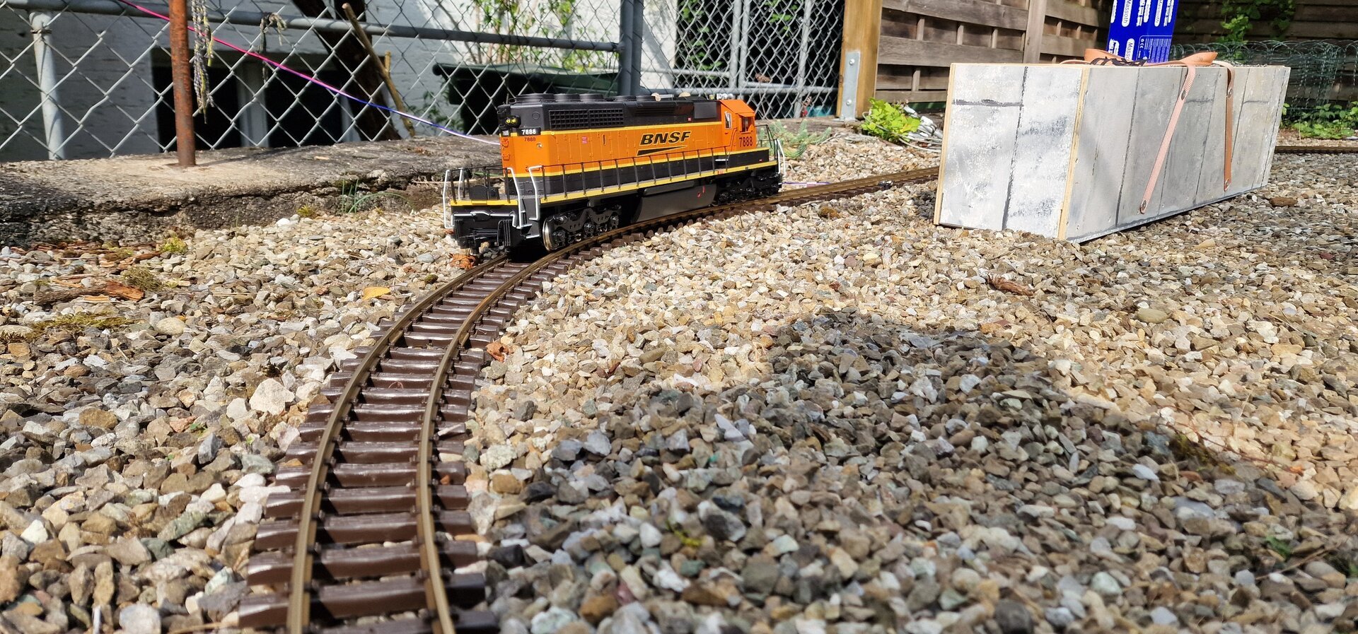21.09.2025: Spontanes Fahren mit der SD40-2 BNSF von USATGanz Spontanes Fahren bei einem Freund. Mit dem ich zusammen diverses Spur G Rollmaterial habe. Sprich DCC Zentrale, Handregler, Schienen und Weichen.... Schienen (LGB) wurden einfach auf seinem ehemaligen feinem Kies Sitzplatz verlegt. Ohne das der Platz Aus geebnet wurde.