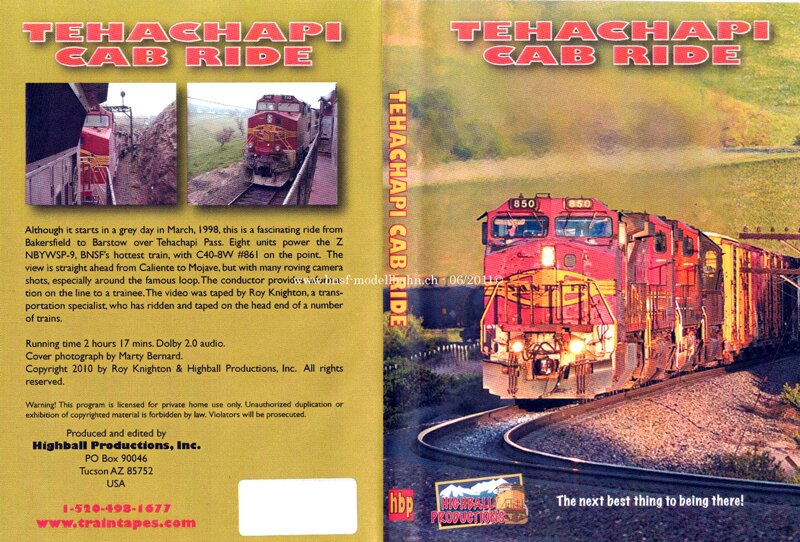Although is starts in a grey day in March, 1998, this is a fascinating ride from Bakerfield to Barstow over Tehachapi Pass. Eight units power the Z NBYWSP-9, BNSF's hottest train, with C40-8W #861 on the point. The view is straight ahead from Caliente to Mojave, but with many roving camera shots, especially around the famous loop. The conductor provides information on the line to a trainee. The video was taped by Roy Knighton, a transportation specialist, who has ridden and taped on the head end of a number of trains.
