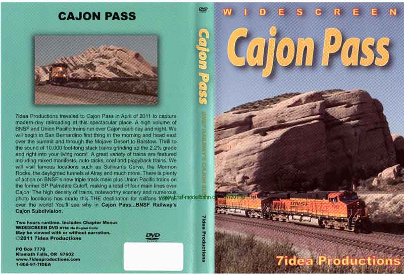 7idea Productions traveled to Cajon Pass in April of 2011 to capture modern-day railroading at this spectacular place. A high volume of BNSF and Union Pacific trains run over Cajon each day and night. We will begin in San Bernardino first thing in the morning and head east over the summit and through the Mojave Desert to Barstow. Thrill to the sound of 10,000 foot-long stack trains grinding up the 2,2% grade and right into your living room! A great variety of trains are featured including mixed manifests, auto racks, coal and piggyback trains. We will visit famous locations such as Sullivan's Curve, the Mormon Rocks, the daylighted tunnels at Alray and much more. There is plenty of action on BNSF's new triple track main plus Union Pacific trains on the former SP Palmdale Cutoff, making a total of four main lines over Cajon! The high density of trains, noteworthy scenery and numerous photo locations has made this THE destination for railfans from all over the world! You'll see why in Cajon Pass... BNSF Railway's Cajon Subdivision.