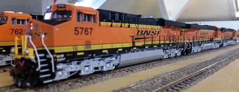 GE GEVO ES44AC #5767 BNSF Black swoosh. Modell von Roman Britt. Modell: Athearn Genesis, DC/DCC w/Tsunami Sound / Model by Roman Britt. Model: Athearn Genesis, DC/DCC w/Tsunami Sound