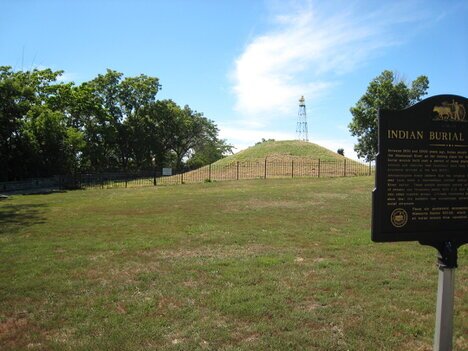 Burial mounds in present-day Indian Mounds Park suggest the area was inhabited by the Hopewell Native Americans about 2,000 years ago. From the early 17th century to 1837, the Mdewakanton Dakota, a band of the Dakota people, lived near the mounds at the village of Kaposia and consider the area encompassing present-day Saint Paul Bdóte, the site of creation for their people. The Dakota called the area Imniza-Ska ("white cliffs") for its exposed white sandstone cliffs on the river's eastern side. The Imniza-Ska were full of caves that were useful to the Dakota. The explorer Jonathan Carver documented the historic Wakan tipi in the bluff below the burial mounds in 1767. In the Menominee language Saint Paul was called Sāēnepān-Menīkān, which means "ribbon, silk or satin village", suggesting its role in trade throughout the region after the introduction of European goods. Afther the 1803 Louisiana Purchase, U.S. Army Lieutenant Zebulon Pike negotiated approximately 100,000 acres (40,000 ha; 160 sq mi) of land from the indigenous Dakota in 1805 to establish a fort.