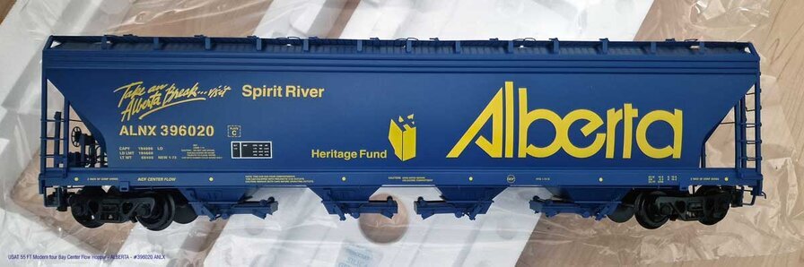So nun ist er da der 55 FT Modern Center Flow Hopper ALPX - Alberta Spirit River von USAT. Gewicht gute 2,6 kg, länge 58,5 cm. Er ist sauber lackiert und ebenso auch sauber und gut lesbar bedruckt. Die Achsen sind gefedert und die Domdeckel lassen sich öffnen und ebenso lässt sich der "kurze" Teil des Auslasses öffnen. Ebenso ist er sehr gut Detailtiert. Man sehe die Bilder.