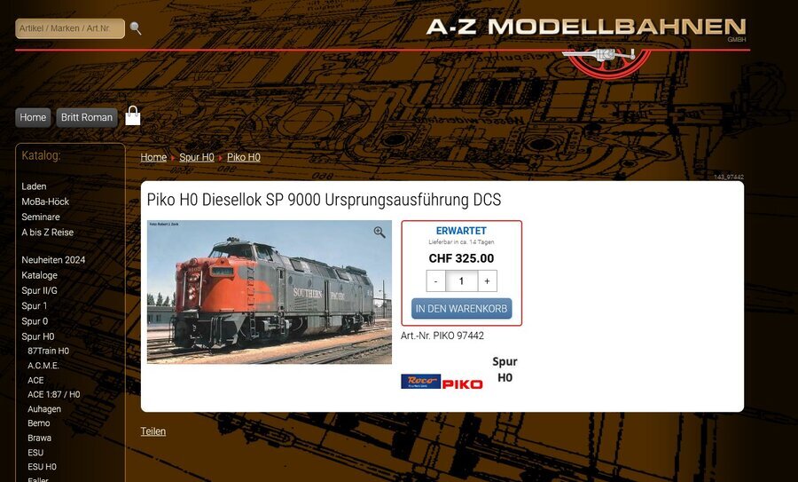 Ich habe die Sound-Diesellok SP 9000 "Ursprung" III, inkl. PIKO Sound-Decoder (MK ML4000) bei A bis Z Modellbahnen** Online Bestellt. Dies mit Hinweis von Werner Meer. Da er selber diese nicht Importieren kann. Da der Importeur dies nicht will.