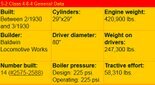 Builder: Baldwin Locomotive Works | Driver diameter: 80" | Weight on drivers: 247,300 lbs. | ||||||